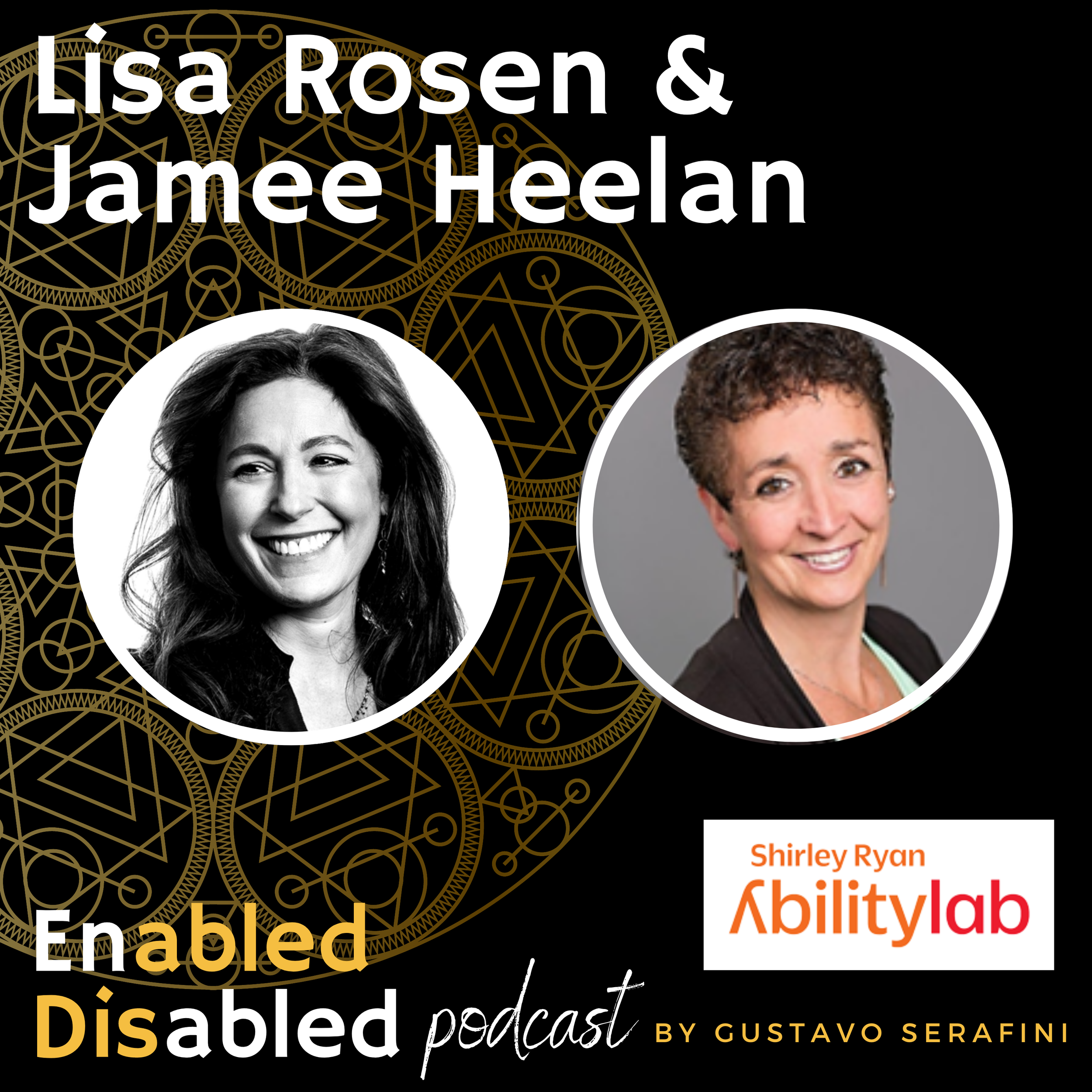 Hi everybody, it's Gustavo, the host of the Enabled Disabled podcast. I am a middle aged Latin American male with dark brown hair combed parted in the middle. I am in my living room right now with navy blue polo shirt on and I am just thrilled to introduce Lisa Rosen and Jamie Healing from the Shirley Ryan Ability Lab to the show. We are going to have a fantastic conversation. This is a one of a kind rehab centre in the world. Probably one of the few hospitals that is empowering the community and people with disabilities unlike any other. Lisa and Jamie, I'm so excited and honoured to have you both here. Can you please introduce yourselves and tell us a little bit about what you look like and where you are? Sure.